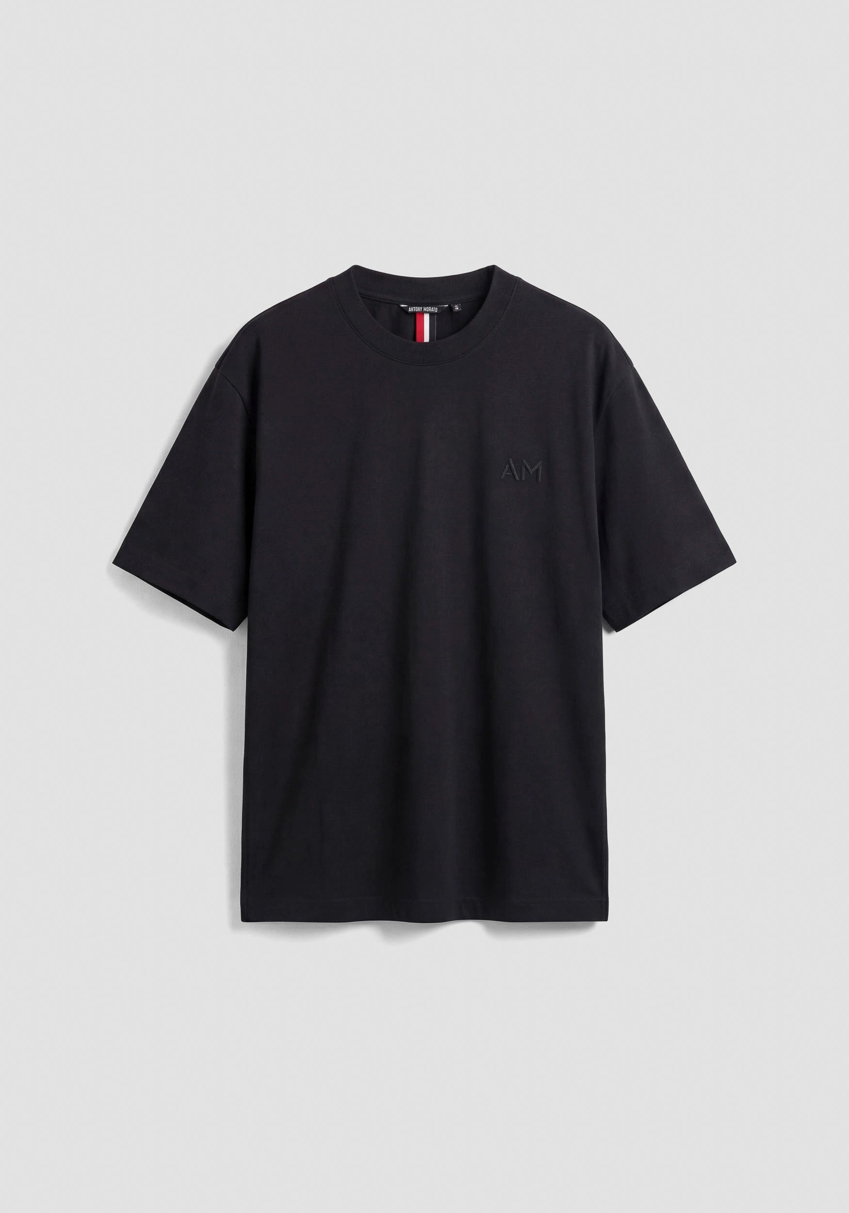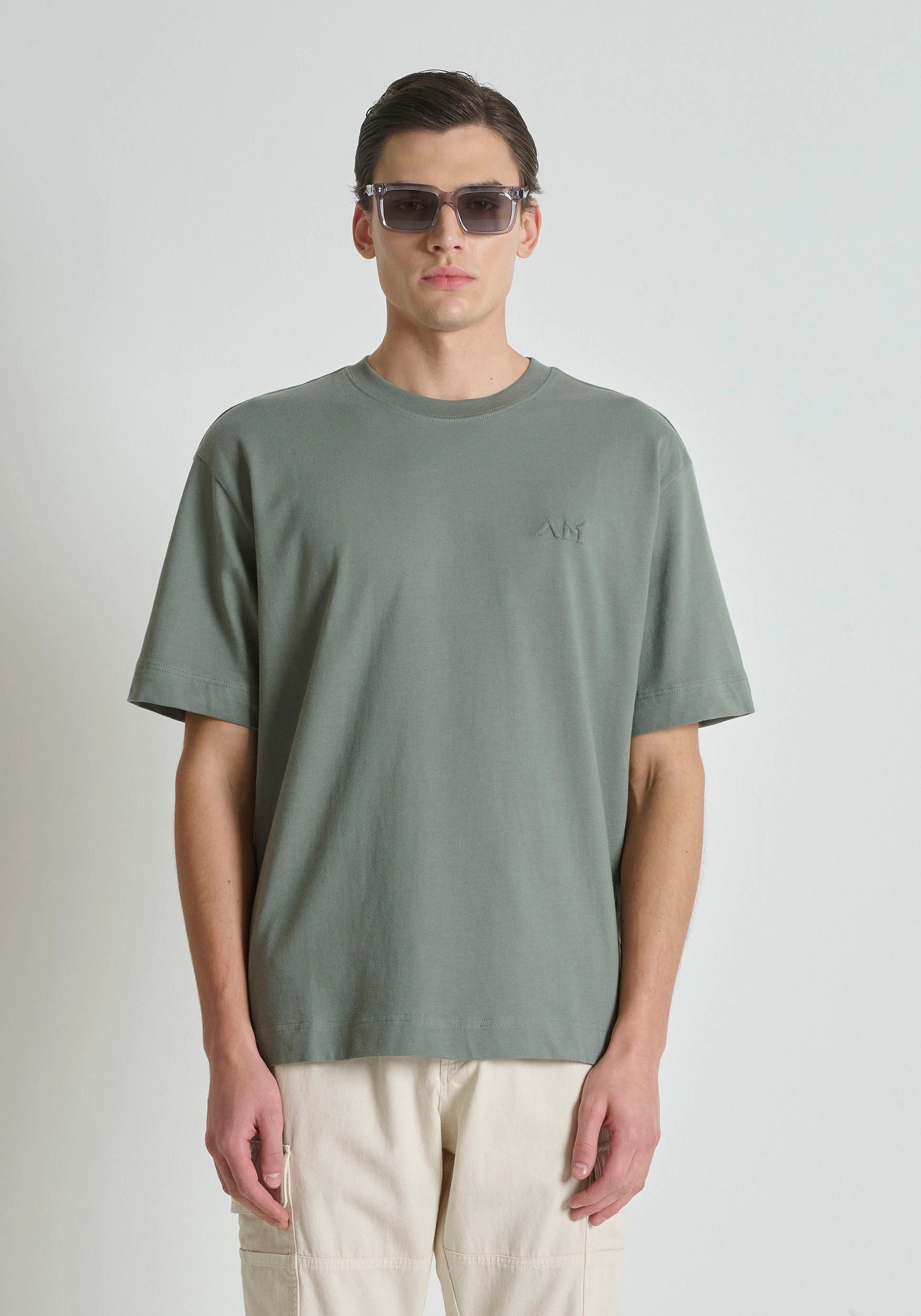 BOXY FIT COTTON JERSEY CREW NECK T-SHIRT WITH EMBROIDERED LOGO