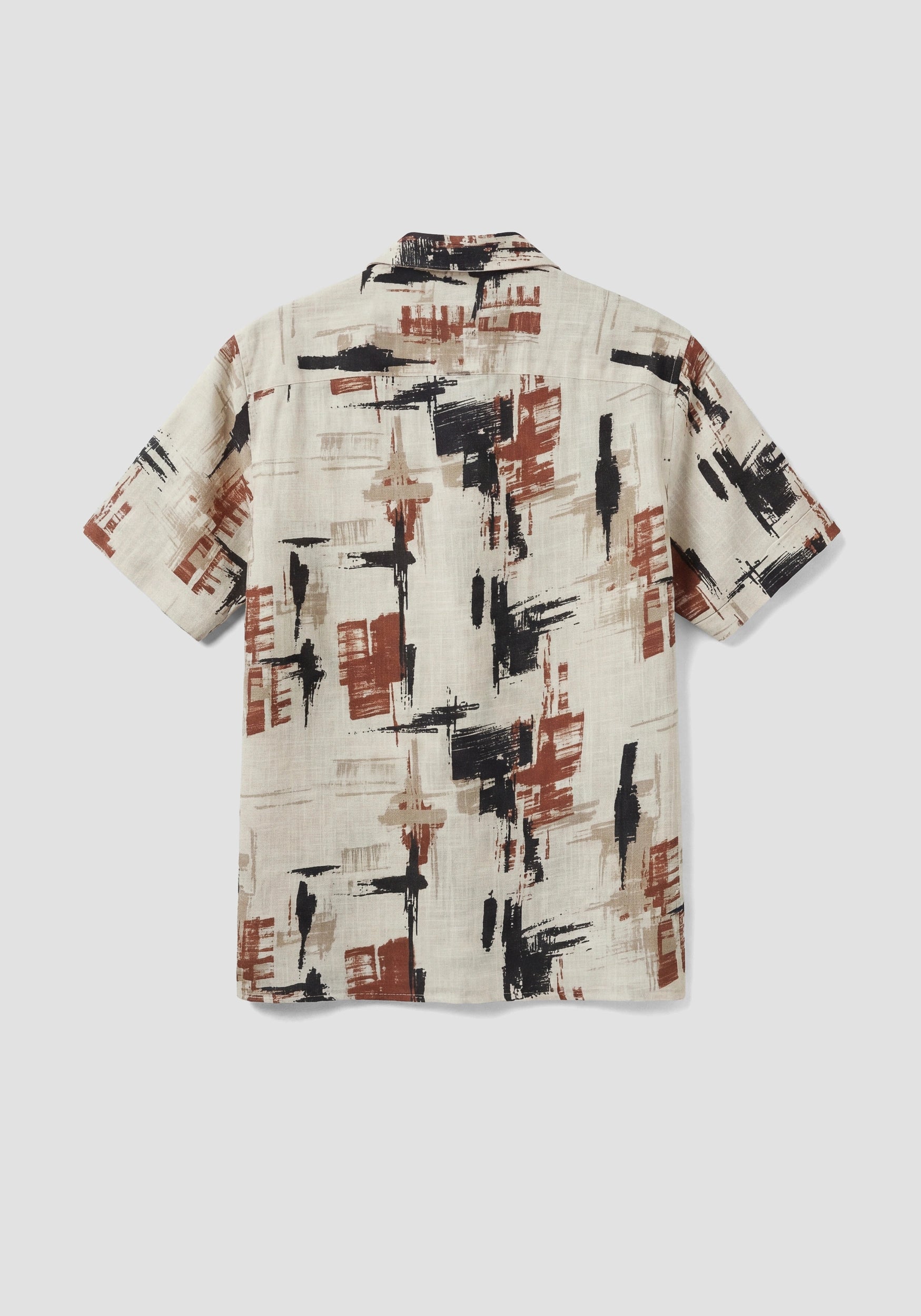 CHEMISE RELAXED STRAIGHT FIT « HONULULU » EN VISCOSE MÉLANGÉE FLAMMÉE À MOTIF ABSTRAIT