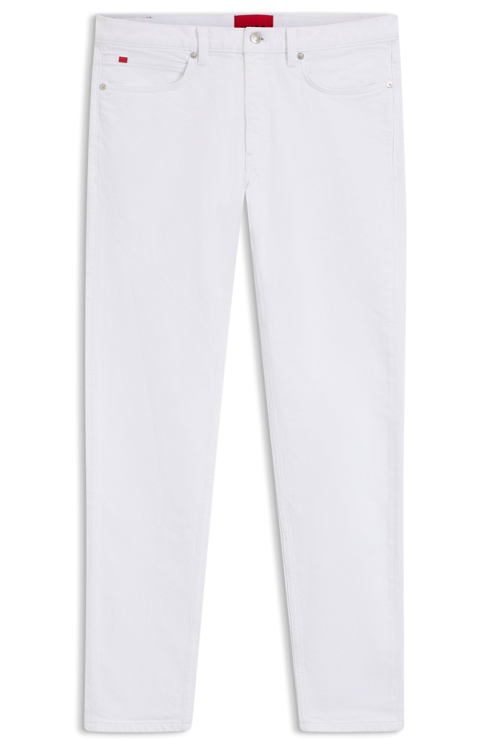 En denim stretch pour un confort optimal, ce jean HUGO Homme présente une finition blanche fraîche. Coupe ajustée.